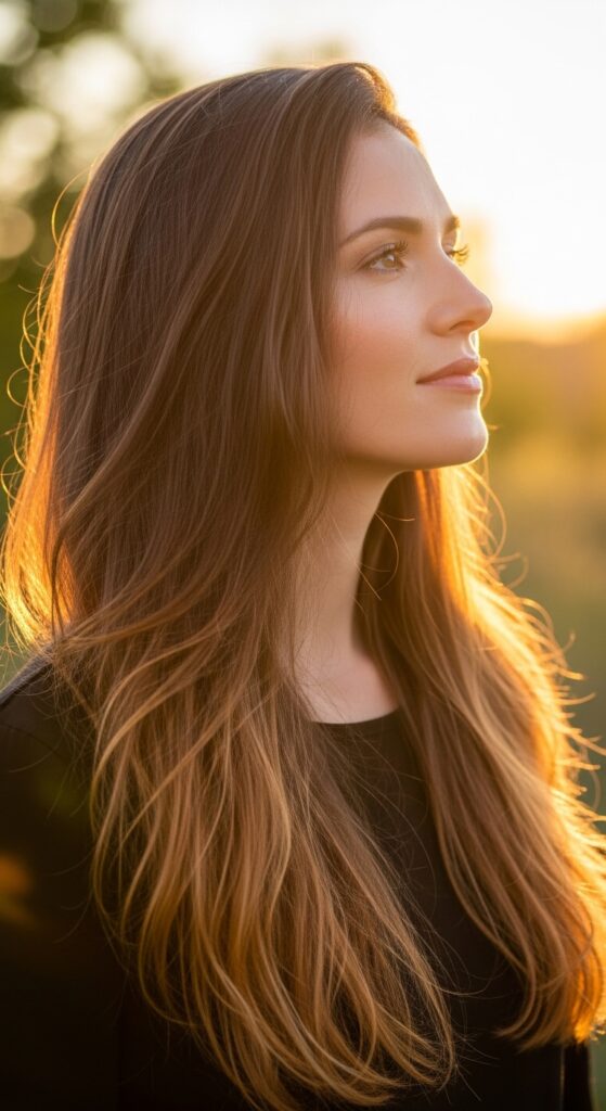 For women with naturally dark or black hair, this is the most natural-looking way to do an ombre. The roots stay rich black, and the ends get a soft, warm brown or caramel tone. It mimics the way sun naturally lightens the ends over time. It’s incredibly flattering and doesn’t require bleach to ridiculous levels. This look is very old money hair—it’s subtle, expensive looking, and doesn’t scream for attention. The warmth at the ends adds dimension and shine. It’s the perfect way to refresh your hair without damaging it.