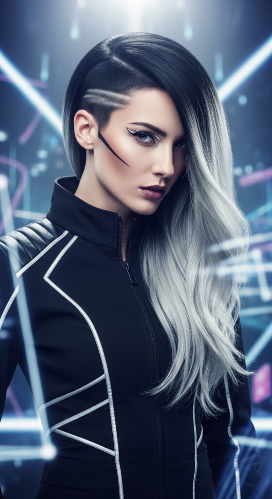 This is the glitchy glam hair look everyone is talking about. It’s digitally cool. The top is a very deep black, and the ends are a metallic silver or grey. It looks like a beautiful glitch in the matrix. The trick is to get the silver to look shiny and seamless, not dusty. This is a high-fashion look that still works for everyday if you have the confidence to pull it off. It looks especially good on straight, sleek haircuts or a long bob. You’ll need to use a silver toning shampoo regularly to keep the grey from turning blue or green.
