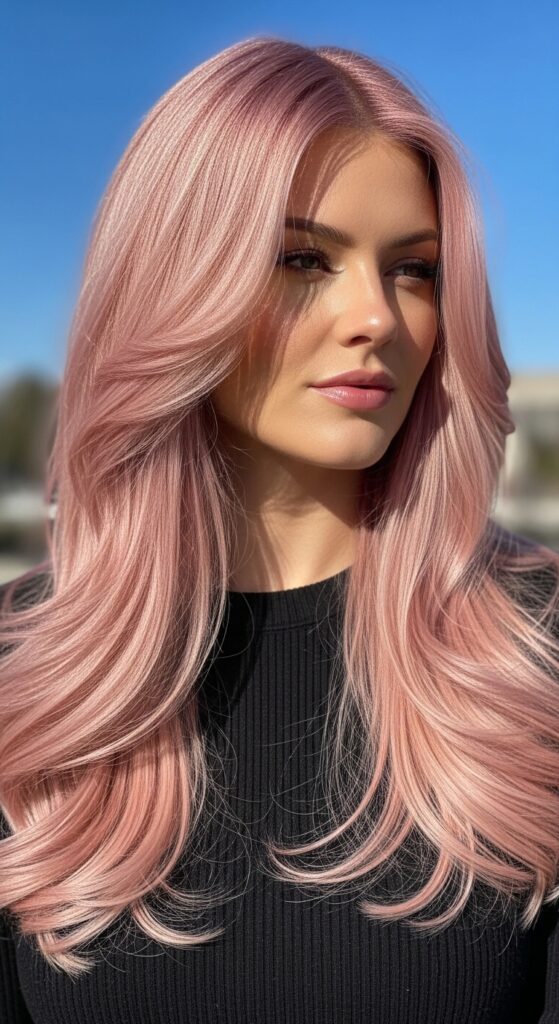 Still completely obsessed with this one. Rose gold ombre is like wearing a piece of jewelry on your head. It starts with a warm pink-copper tone at the roots and melts into a softer, almost peachy blush at the ends. The transition is so dreamy and romantic. It fits right into the romantic goth hairstyles vibe if you add a slight ashier tone to the ends, but it’s equally sweet for spring brunches. Because it’s a lighter color, you’ll need to use a color-safe shampoo and a weekly mask. But honestly, the compliments you’ll get? Totally worth it.