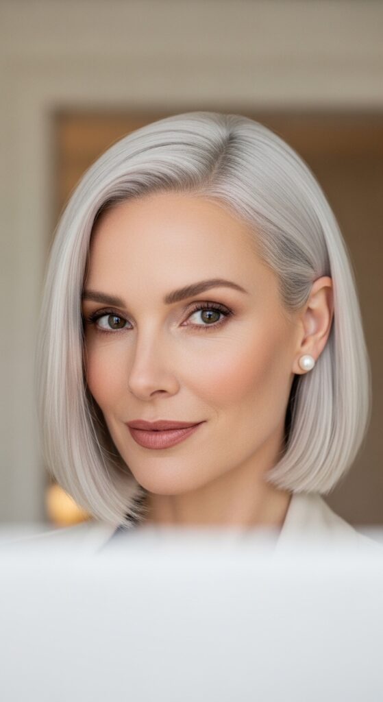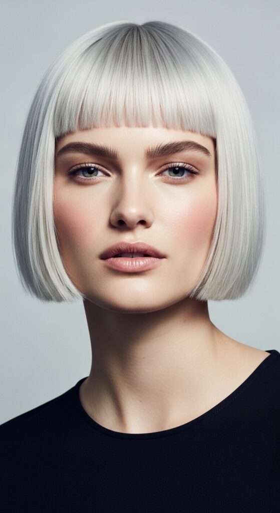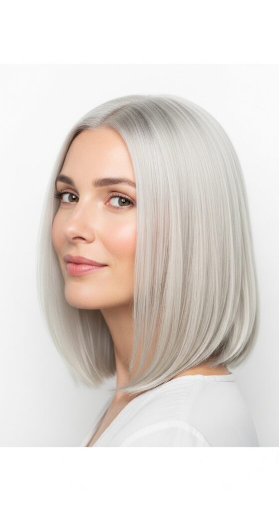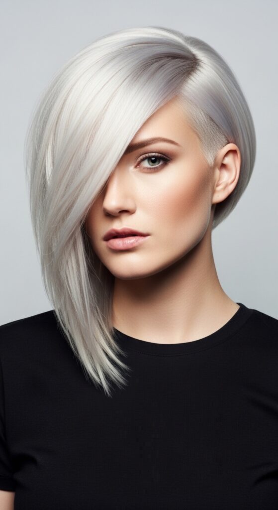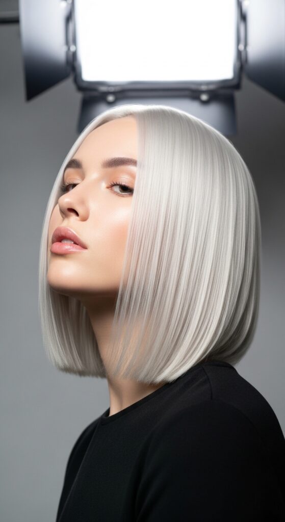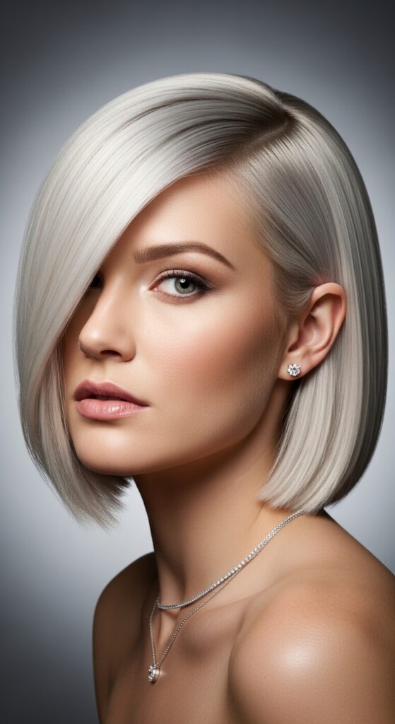This is the bob for anyone who wants that high-shine, satin look. It’s all about smooth, sleek hair with a deep side part. The platinum color reflects light like a mirror, making your hair look incredibly healthy.