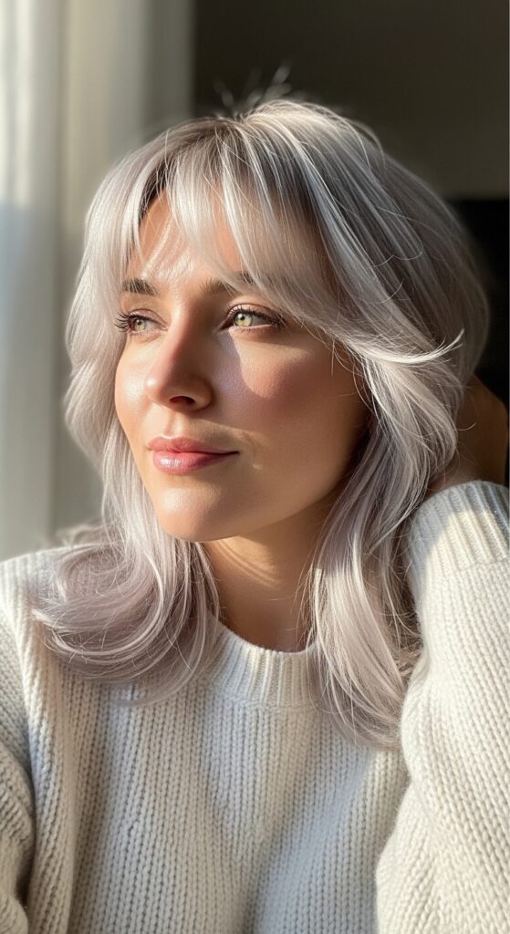 Curtain bangs are still going strong, and they look amazing with platinum. They frame your face gently and add a youthful, soft touch to an otherwise bold color. It’s a very wearable choice for everyday.