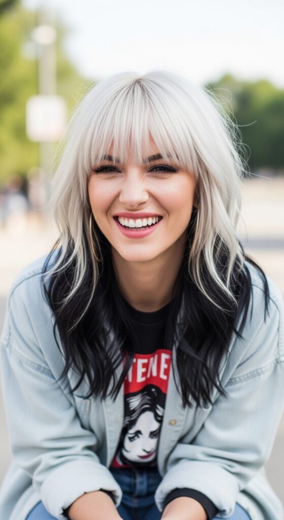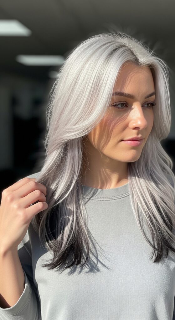 Here’s a fun twist: keep the top layer platinum and let a dark underlayer peek through. It’s a peekaboo effect that adds depth and a little edge. You can style it with a half-up ponytail to show off the contrast.