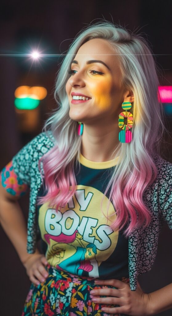 If you want to add a little personality to your platinum, dip-dye the ends in a soft pastel pink. It’s a fun, subtle pop of color that doesn’t require a full commitment. The pink fades out beautifully over time.