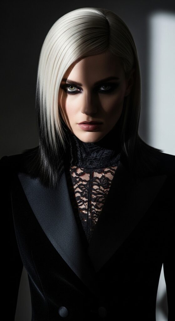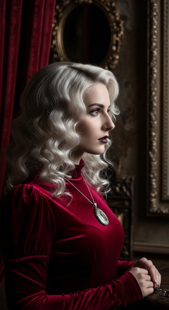 For anyone who loves a little drama, romantic goth hairstyles with platinum hair are pure magic. Think big, bouncy curls with a dark lip and a touch of eyeliner. It’s soft, but it has a bit of an edge.