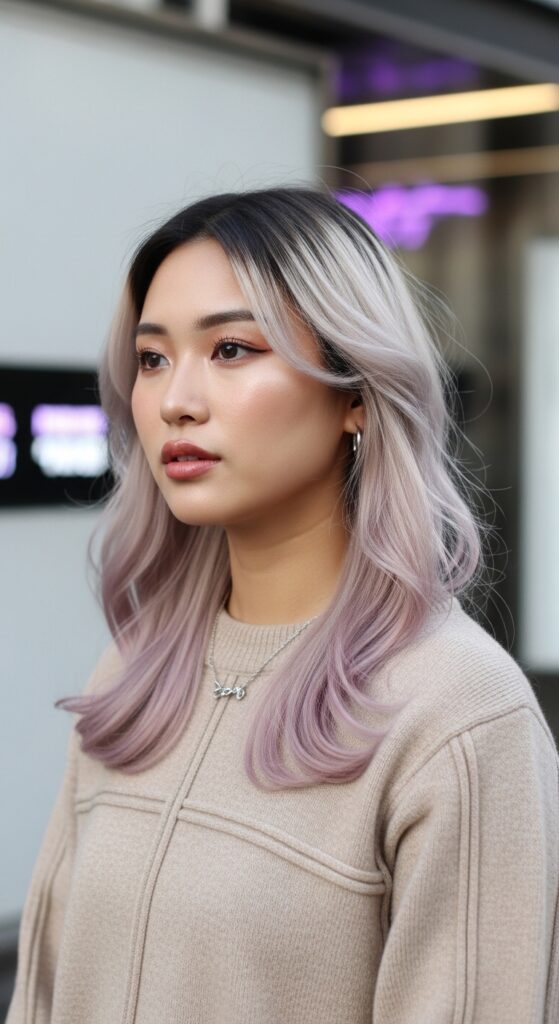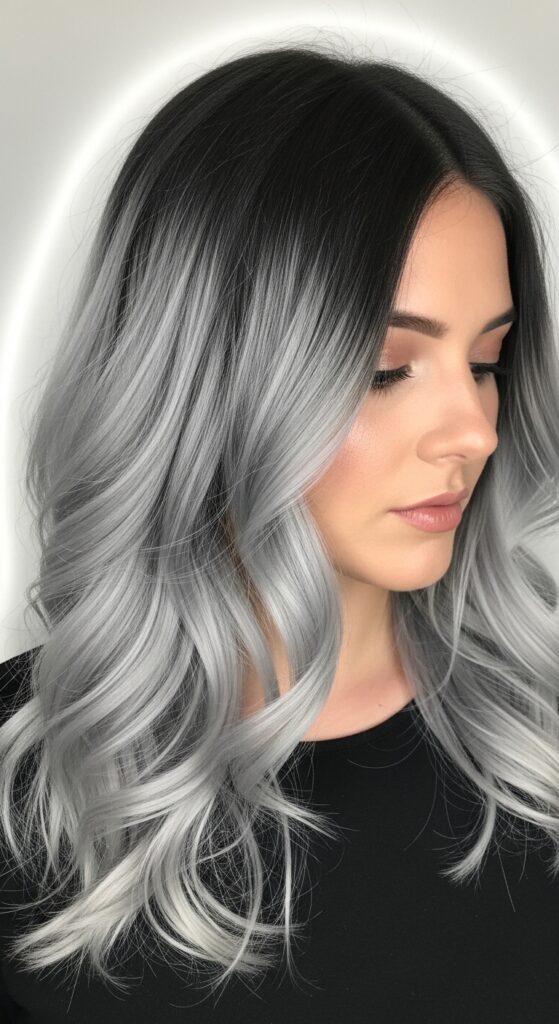 If you’re not ready to go fully platinum, an ombre is your best friend. Start with your natural dark roots and let them fade into a silver pearl tone. It’s grown-out glamour that feels intentional and chic.