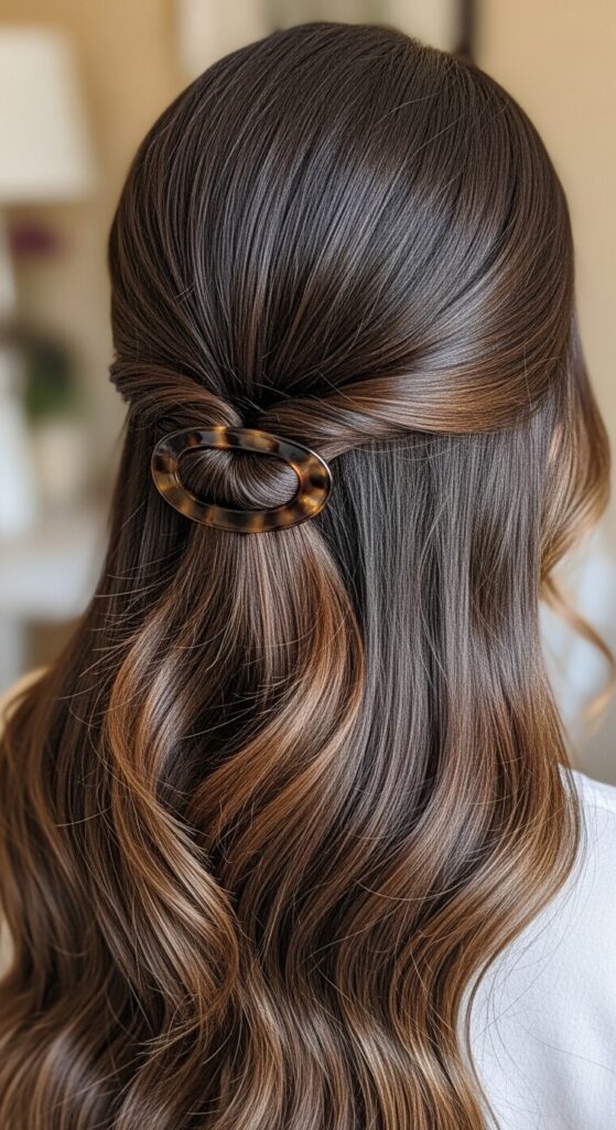 This is my go-to when I want to look like I tried, but really didn’t. The simple twist elevates the basic half-up style instantly. It keeps hair out of your face while showing off your length and texture, perfect for garden parties or brunch.