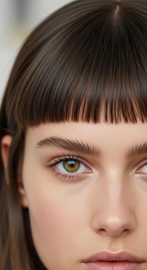 This fringe demands confidence and a little styling. You’ll need to blow-dry it smooth with a round brush. It pairs beautifully with longer hair, lobs, or bobs. It’s a commitment, but it frames the eyes so beautifully and makes every look feel deliberate.
