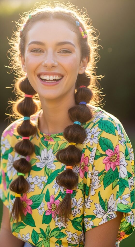 For the easiest, most playful updos of the season, you have to try bubble braids. They look complicated but are seriously simple. They work on any hair length and instantly make any outfit look more fun and intentional.
