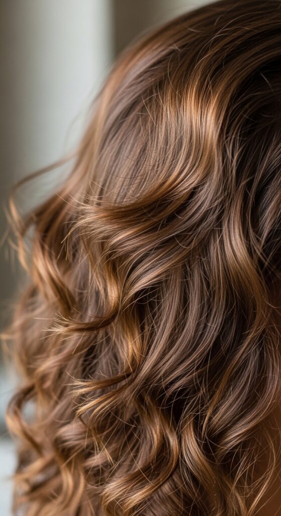 This look is all about contrast and texture. Start with a deep base color and ask for subtle shadow roots or face-framing highlights. Style your waves to be soft and touchable, not stiff. Add a velvet ribbon or a simple silver clip for that perfect finishing touch.
