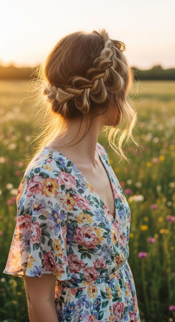 Channel those spring beach vibes even if you’re landlocked. A braid crown is romantic, keeps your hair completely off your neck, and looks intricate (though it’s just two simple braids). It’s perfect for weddings, dates, or just feeling pretty.