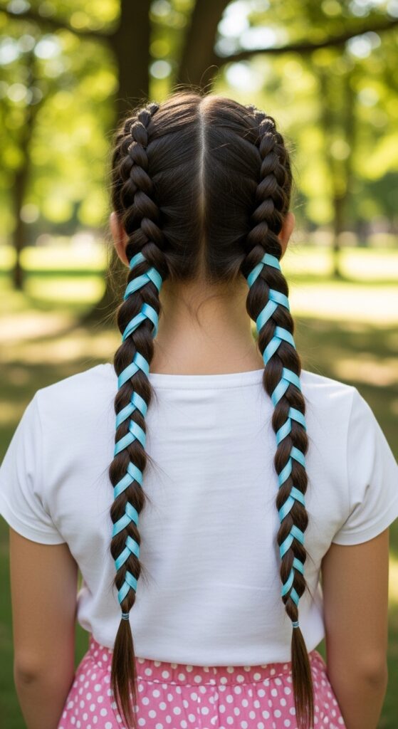20. Ribbon-Braided Pig Tails