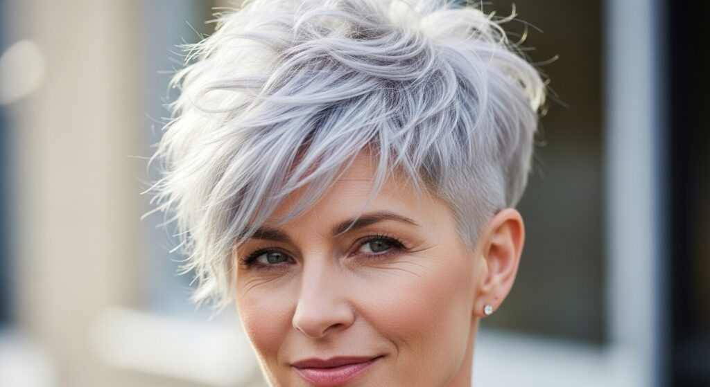 Few cuts are as liberating and chic as a pixie on silver hair. It highlights facial features and lets the multidimensional tones of your gray shine. For a modern twist, ask your stylist for textured layers on top with closely shaved or tapered sides. This creates beautiful contrast and volume. A pixie is remarkably low-maintenance but requires regular trims to keep its sharp, sophisticated shape.