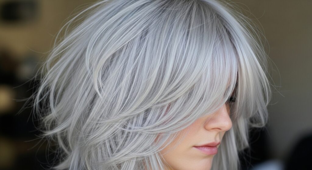 Bangs can instantly update your look and add a youthful touch. On silver hair, soft curtain bangs or a wispy fringe blend seamlessly, softening the forehead and highlighting the eyes. They work with almost any length and can help transition a grow-out phase. Bangs add a touch of mystery and romance to your overall sophisticated vibe.