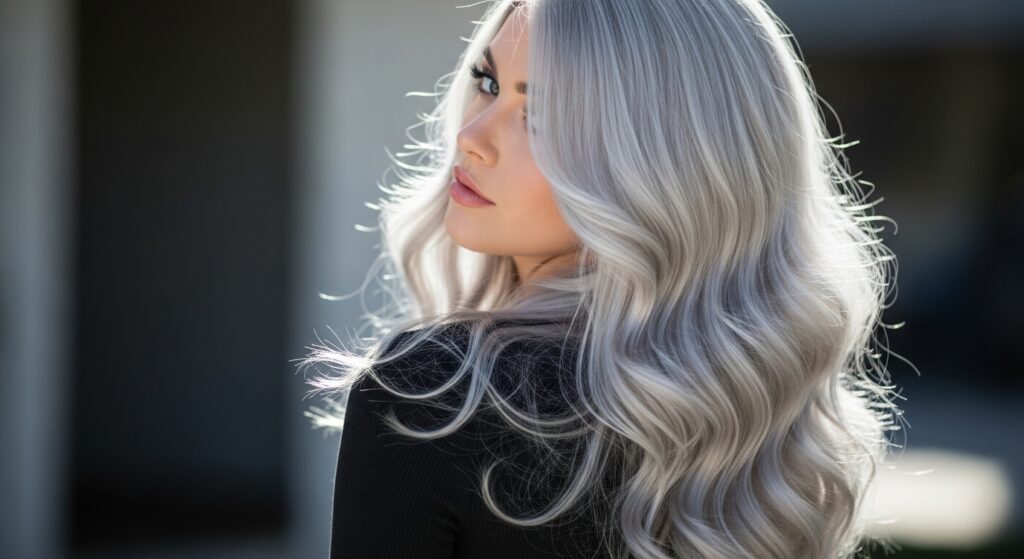 Long silver hair is nothing short of majestic. When healthy and well-cared-for, it resembles a cascade of moonlight or spun silk. The key to sophistication here is in the condition and styling. Keep ends fresh with regular trims, use purple shampoo to combat brassiness, and style with large-barrel curls or loose waves to create a romantic, ethereal effect that’s both powerful and graceful.
