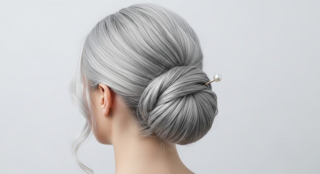 For formal events or when you simply want to feel exquisite, a silver updo is unparalleled. A low chignon, a twisted bun, or a braided crown all look exceptionally elegant with gray tones. The variation in color adds depth to the style. Don’t aim for perfection; a few loose face-framing strands elevate the look from stiff to effortlessly chic.