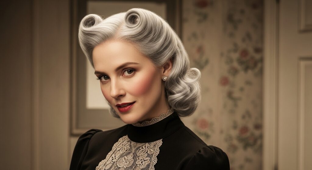 Channel old Hollywood glamour by pairing your silver hair with vintage styling. Victory rolls, finger waves, or soft pin curls celebrate the timeless beauty of gray hair. These styles look particularly stunning on shorter to medium-length hair and are perfect for special occasions. They tell a story of grace and history, making your look deeply sophisticated.