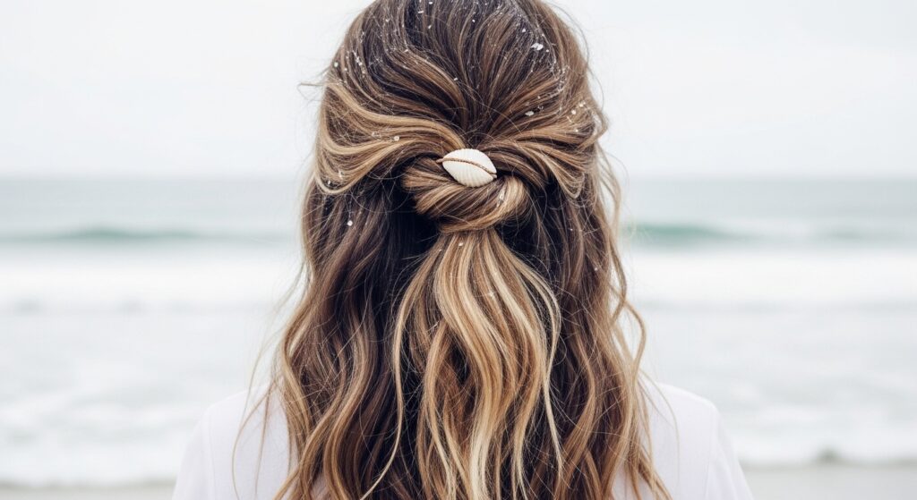 Pair your twist with beachy waves. Tease the crown for volume, create a loose, slightly messy twist, and pull out face-framing tendrils. It’s a gorgeous, relaxed-vintage vibe that feels like a day by the sea.
