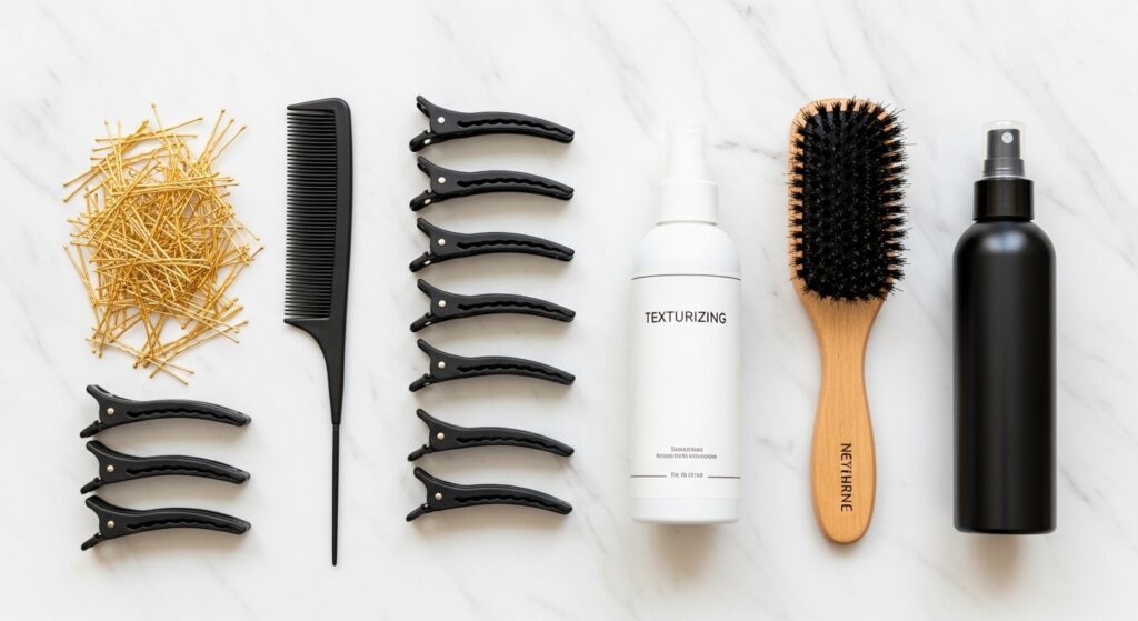Great hairstyles start with the right foundation. For a half-up French twist that holds from morning till night, you’ll need a few key items: fine-tooth comb, bristle brush, sectioning clips, strong-hold bobby pins (matched to your hair color), texturizing spray, and a light-hold hairspray. Prep is crucial. Slightly day-old hair or hair sprayed with a texturizing product provides much better grip than freshly washed, silky strands. If your hair is very smooth, backcomb lightly at the crown for hidden volume before you begin twisting.