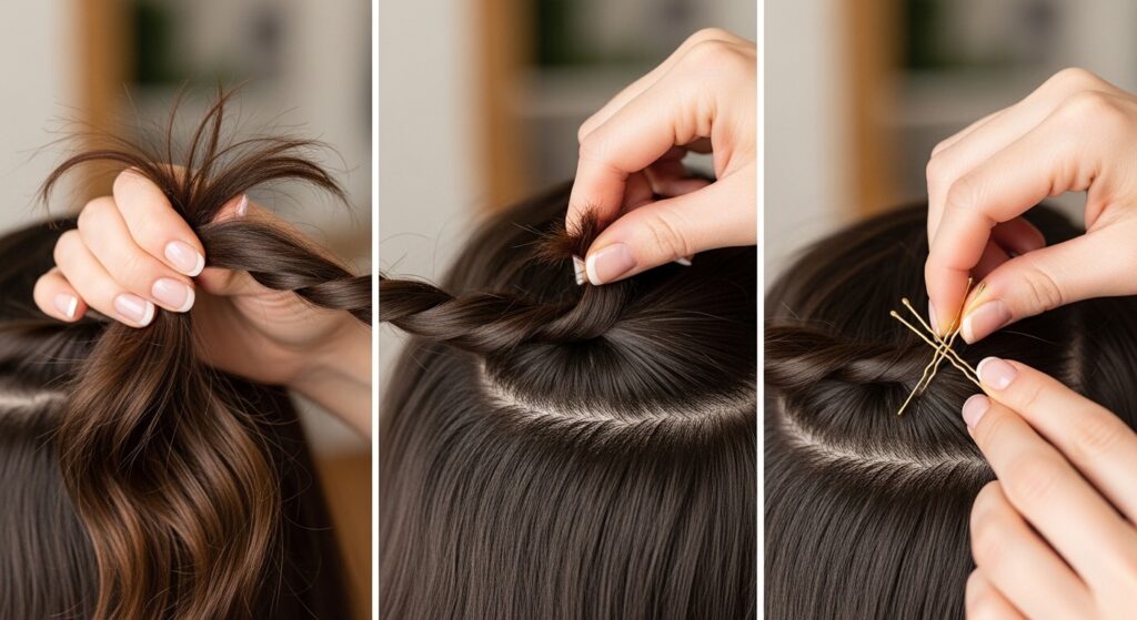 Mastering the technique is key. Always twist in the direction that feels natural—usually gathering hair and twisting it back and slightly upward. Use a mirror to check the back. When pinning, criss-cross your bobby pins for maximum hold, and always pin into the twist and then into the base of your hair for security. Finish with a light mist of hairspray, and for extra hold on flyaways, use a tiny bit of hair wax or pomade on your fingertips to smooth.