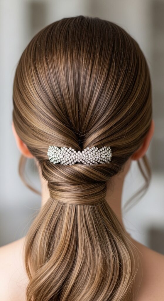 • Use a beautiful, sparkly clip or a simple pearl barrette to secure the twist.
