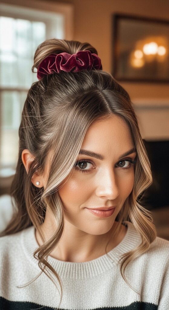 Scrunchies are back in the best way. Using a luxe velvet or silk scrunchie instantly elevates a simple half-up look to old money hair territory.