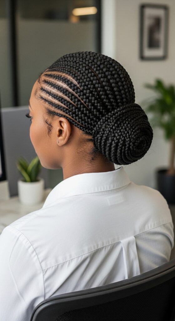 The knotless technique ensures the bun isn’t heavy or pulling. It’s the ultimate “I’m busy but I look polished” style.