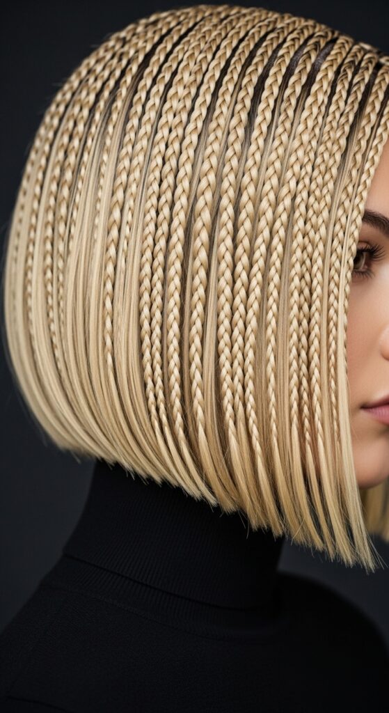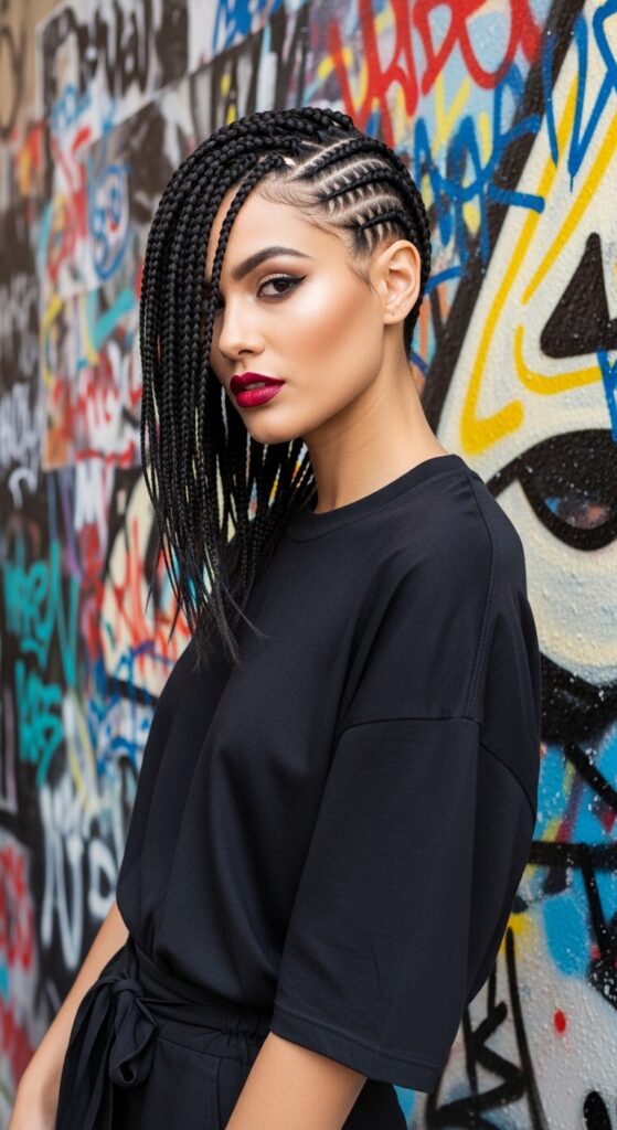 Love a modern, fashion-forward cut? Transform your braids into an asymmetrical lob. This style features braids that are shorter in the back and longer in the front, creating a dramatic, angled line.
