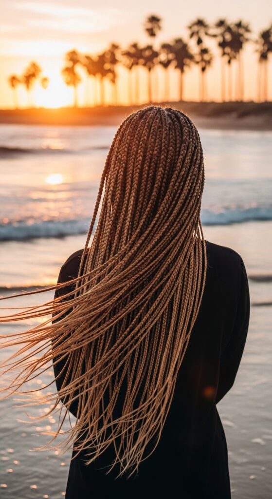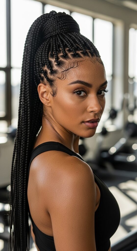 Knotless braids are the ultimate active lifestyle hair. They dry quickly after swimming, don’t get heavy when wet, and stay secure during even the toughest workouts. The lack of tension means no headaches after a high-intensity session.