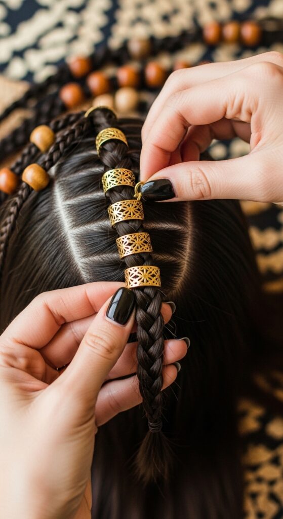 Accessorize, accessorize, accessorize! Adding beads, rings, or cuffs to your knotless braids is the easiest way to personalize your look. You can go for a few strategic pieces or go all out for a festival-ready vibe.