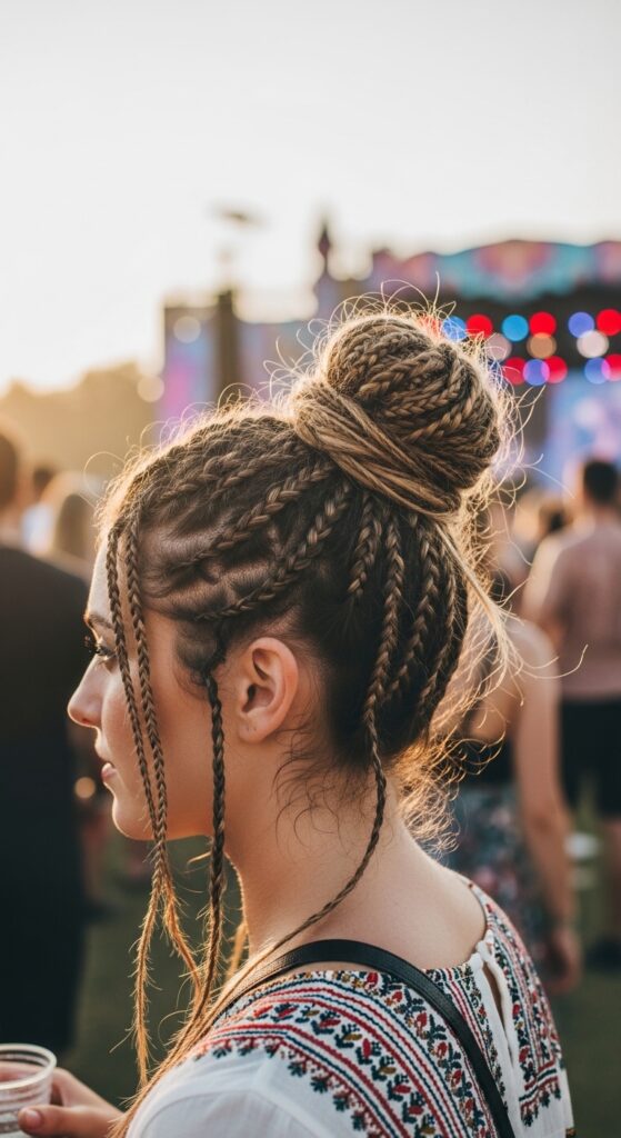 Don’t be afraid to get a little messy! A tousled bun or updo with your knotless braids looks incredibly chic. Pull out a few face-framing pieces and don’t worry about every braid being perfect.