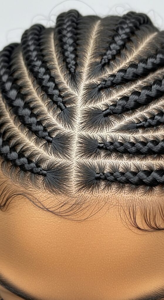 You can do this with micro braids for a more intricate feel or with medium-sized braids for a statement. It’s a beautiful way to play with shape and tradition.