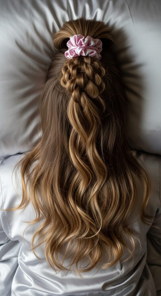 Using a silk scrunchie is non-negotiable here—it prevents breakage and creases. This method gives you major volume and a beautiful shape in the morning.
