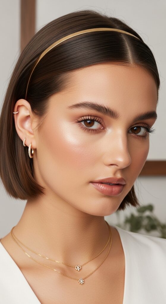 Elevate your micro bob in seconds with a chic headband. It’s the easiest way to add a pop of color, texture, or a quiet luxury touch.