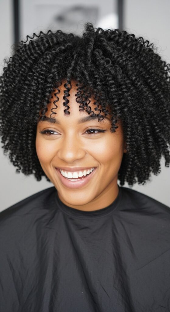 This cut is stunning on natural curls and coils! A shaped bob that celebrates your natural texture, creating a beautiful round shape.