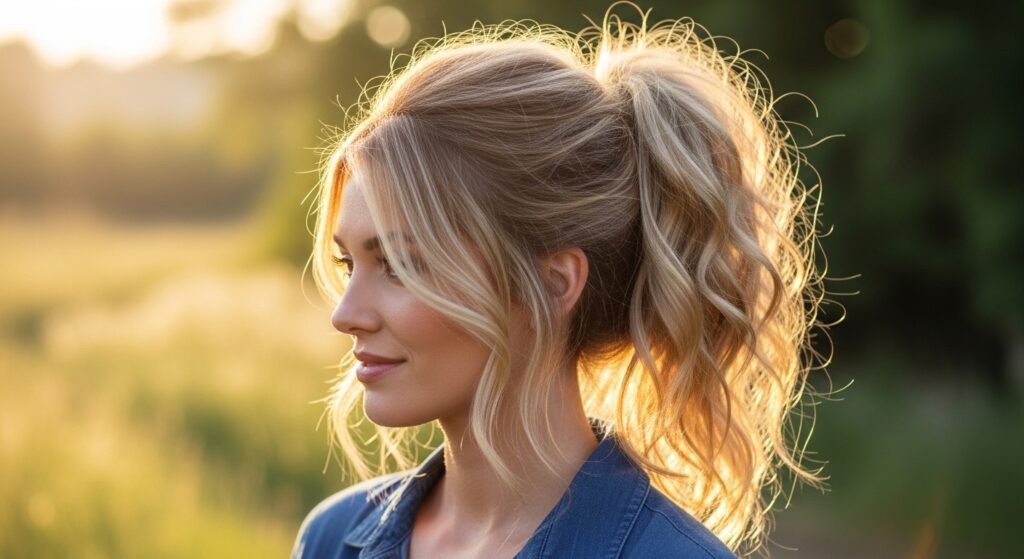 6. Teased Volume Pony: Lightly backcomb the hair at the crown before gathering it. This creates instant lift and volume at the base, preventing a flat look.