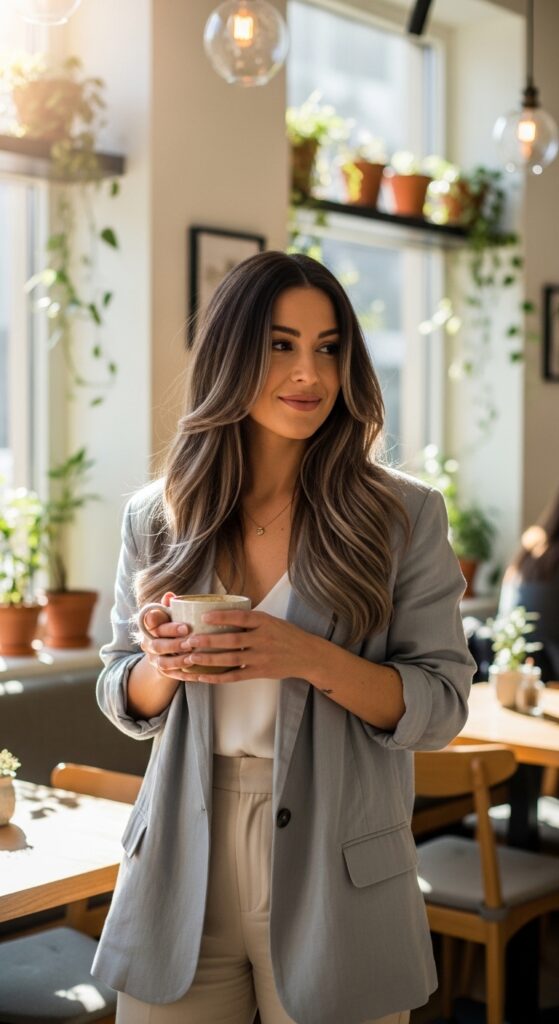 Think of it as your favorite cozy sweater in hair form. It’s rich, it’s warm, and it works for absolutely everyone. But here’s the secret: the cool ash tones and balayage techniques we’re seeing now take it to a whole new level of subtle sophistication.