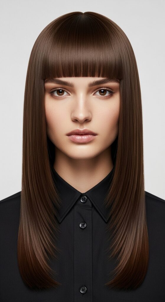 This is a commitment to length and health. A single, solid mocha shade on a razor-sharp blunt cut is breathtaking. It shows off incredible hair health and discipline.
