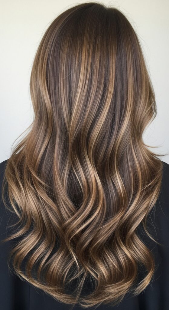 This is the perfect starting point. We take that deep mocha base and paint on soft, ash-toned highlights. The result? Dimension that mimics how the sun naturally lightens your hair.