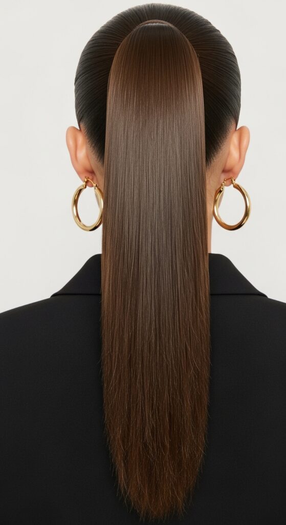 9. Glossy Mocha Ponytail