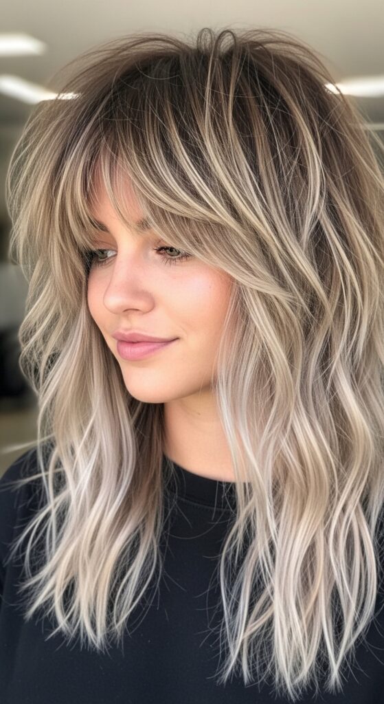 Combine two huge trends: the modern shag and face-framing money pieces. The shag gives unbelievable texture and volume. The ashy money pieces light up your face.