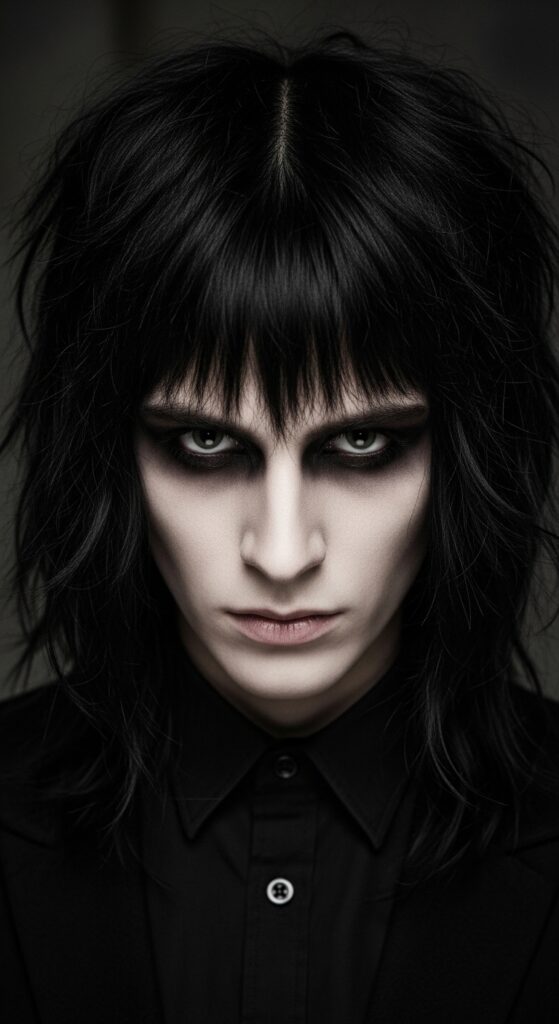 The vampire haircut is a dramatic take on the shag or wolf cut. It features extreme layers, lots of texture, and a generally “undead” yet chic vibe. It’s perfect for the romantic goth aesthetic.