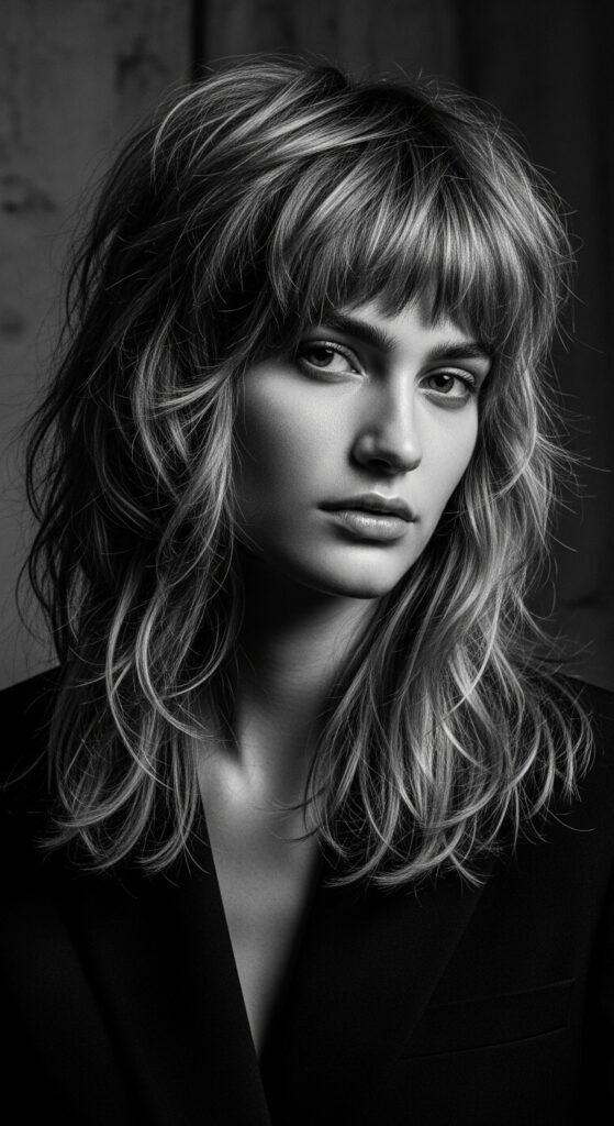 Think messy, deep-colored, and full of attitude. The choppy layers create a halo of volume that’s incredibly flattering. It’s bold, it’s cool, and it’s definitely a conversation starter.