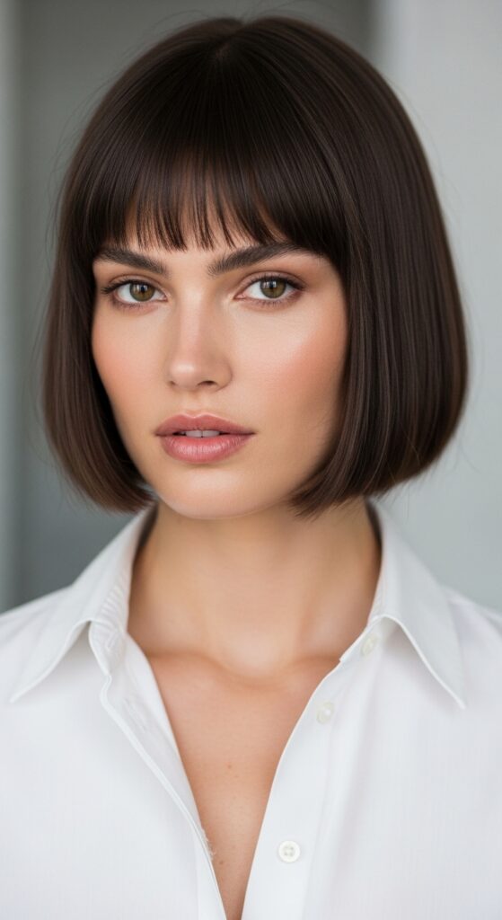 This style whispers elegance. It’s the haircut of someone who doesn’t follow trends because they set them. The clean line is supremely flattering on an oval shape.