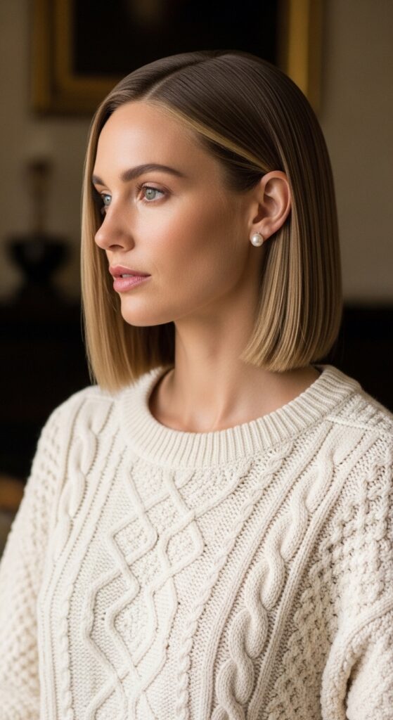 Old money hair is polished, timeless, and looks inherited, not bought. A blunt, collarbone-length lob with zero layers is the epitome of this aesthetic. It’s sleek, heavy, and moves beautifully.