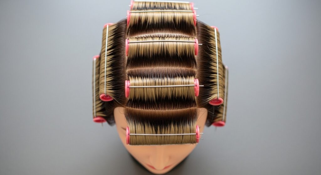 8. The Directional Wrap for Volume: Wrap all rods in the same direction (all back or all away from the face) for a uniform look. For maximum volume at the crown, wrap front sections backward and top sections forward, creating lift where you need it most.