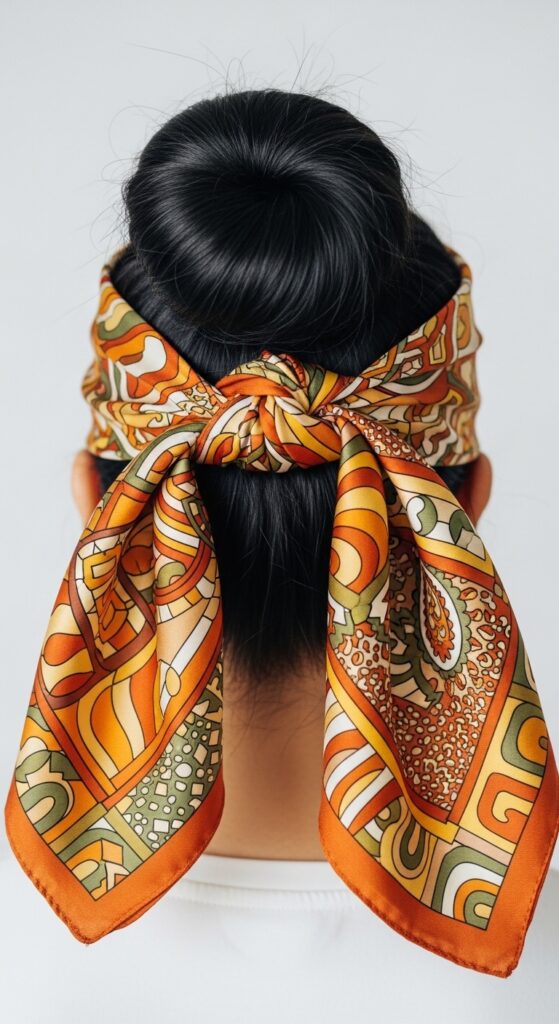 Incorporate a silk scarf or bandana. You can tie it around your head like a headband, letting the ends flow, or wrap it into the base of the bun itself. It adds pattern and a retro-futuristic vibe.