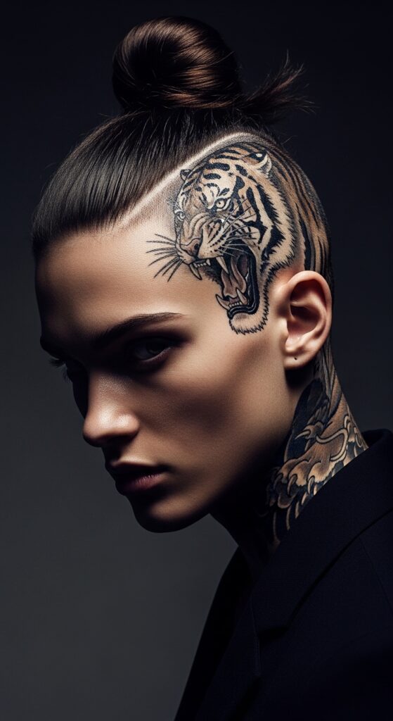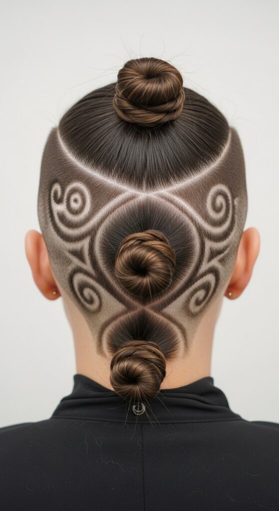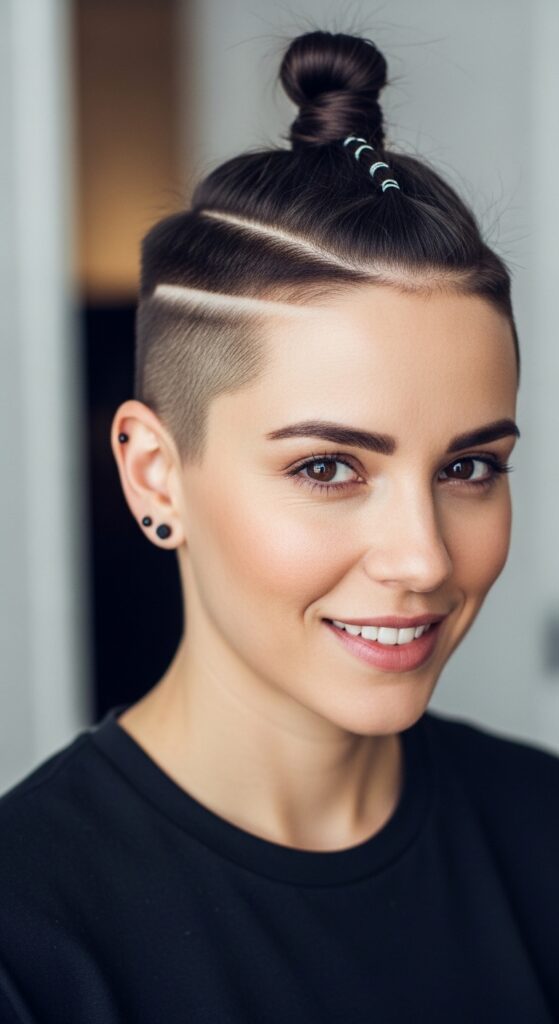 This is where the edgy factor gets dialed up to ten. Shaved or closely clipped sides contrast dramatically with the high, tight bun on top. It’s a bold commitment that screams confidence.