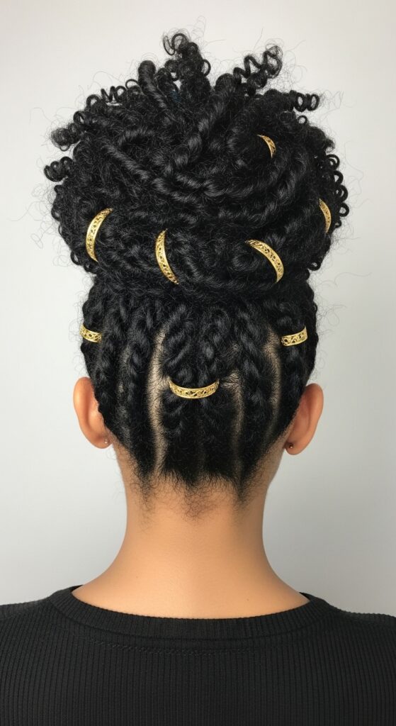 The samurai bun is stunning on textured hair. The key is to smooth and stretch the hair into the ponytail for tension, then allow the bun to have its natural texture or be neatly stretched and wrapped.
