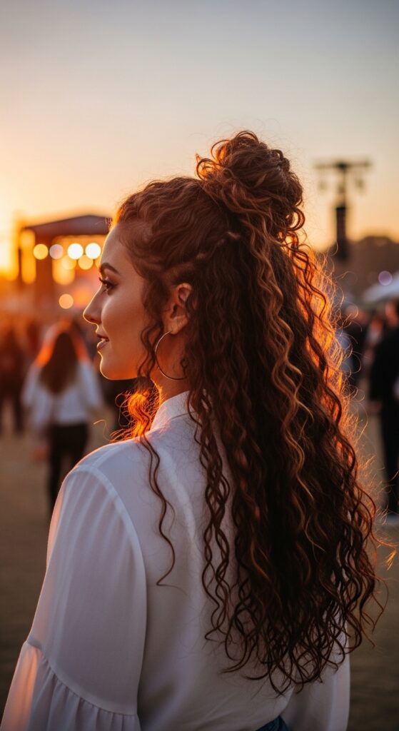Can’t commit to all-up? Do a half-up version. Gather just the top section into a smaller, tight samurai bun, leaving the rest of your hair down. It gives the edge without full commitment.