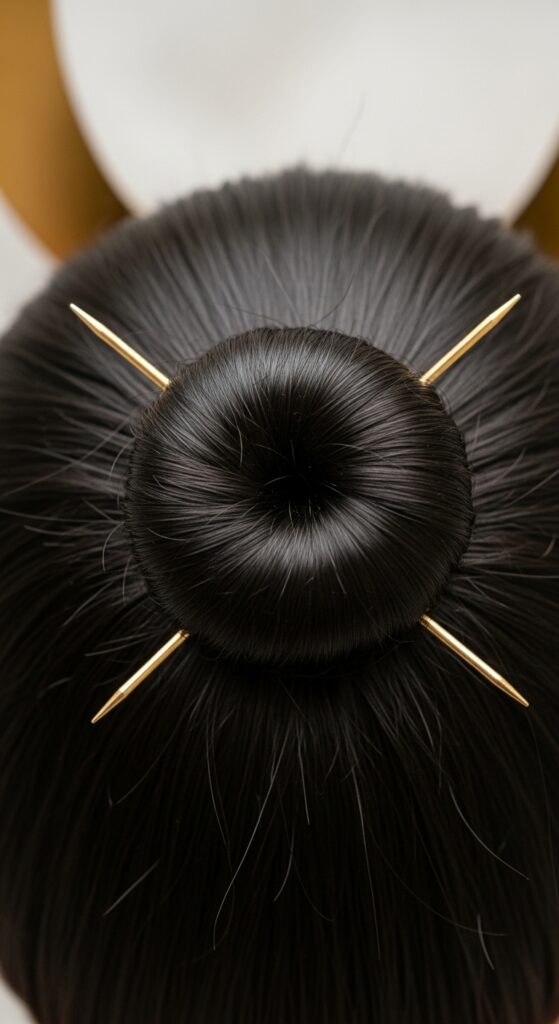 Use minimalist or ornate hair pins to secure the bun. Place them in a deliberate pattern. This turns the functional into decorative, adding a touch of glamour or medieval flair.